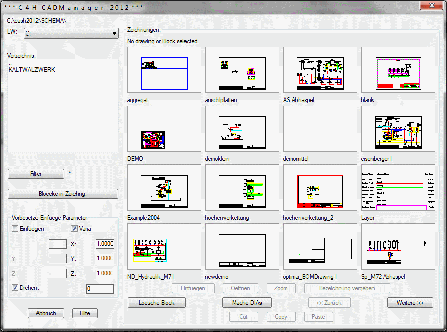 Einfügen und Öffnen von Blöcken und Zeichnungen